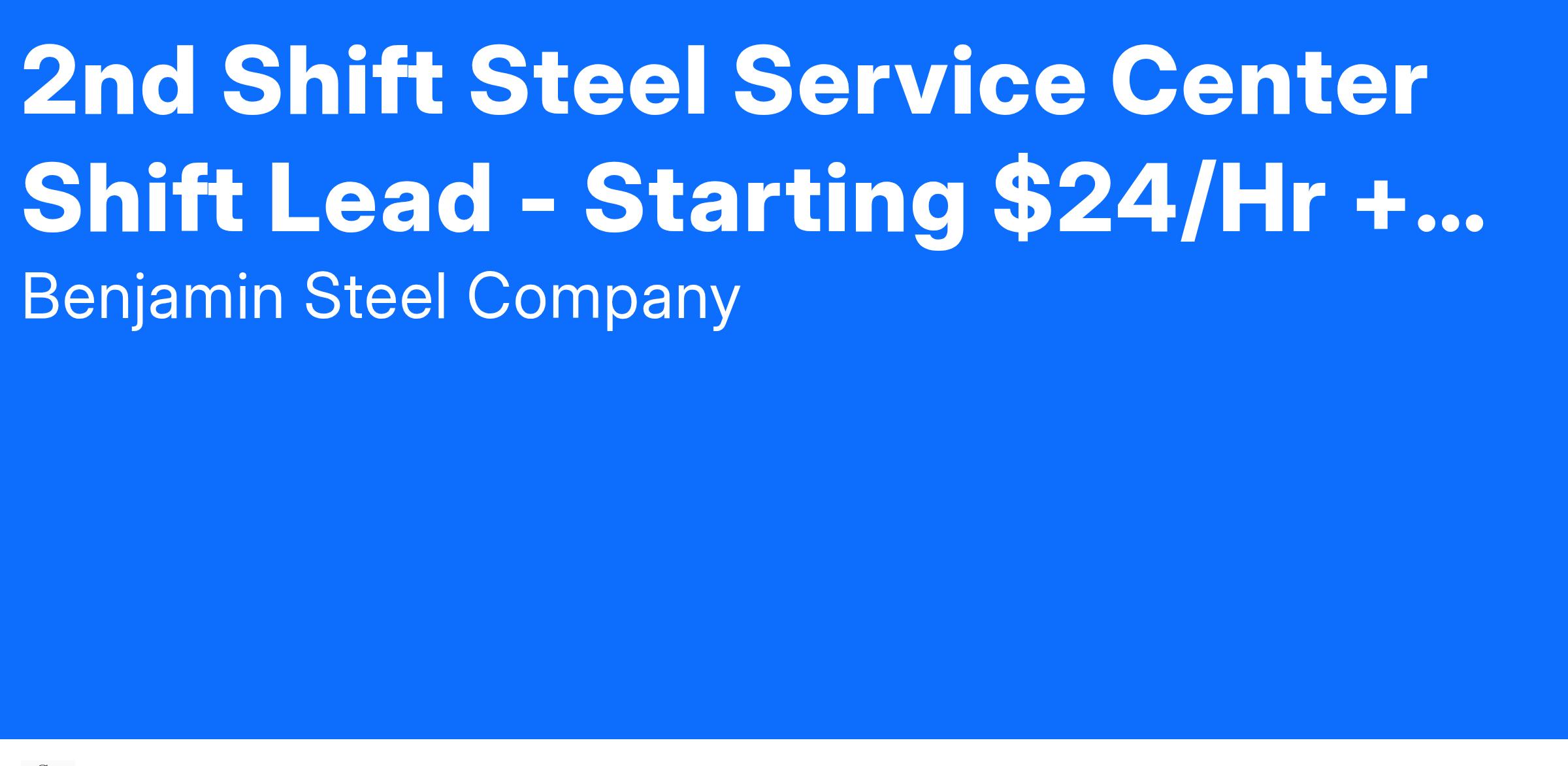 2nd Shift Steel Service Center Shift Lead - Starting $24/Hr + 1.50 Shift Diff