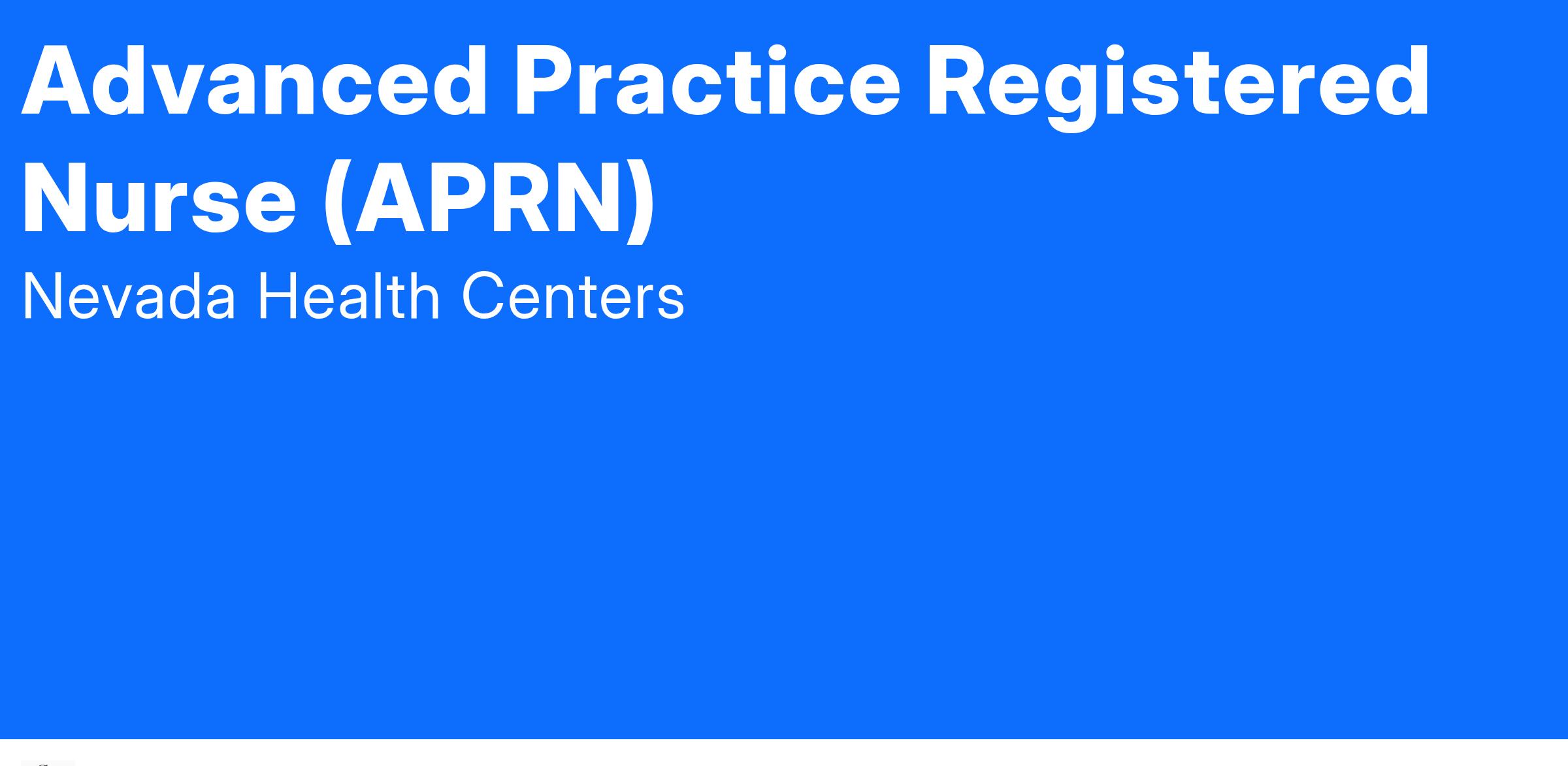Graduate of an accredited Advanced Practice Registered Nurse program; certified by the Nevada State Board of Nursing as an Advanced Practitioner of Nursing. Must be licensed in the State of Nevada.