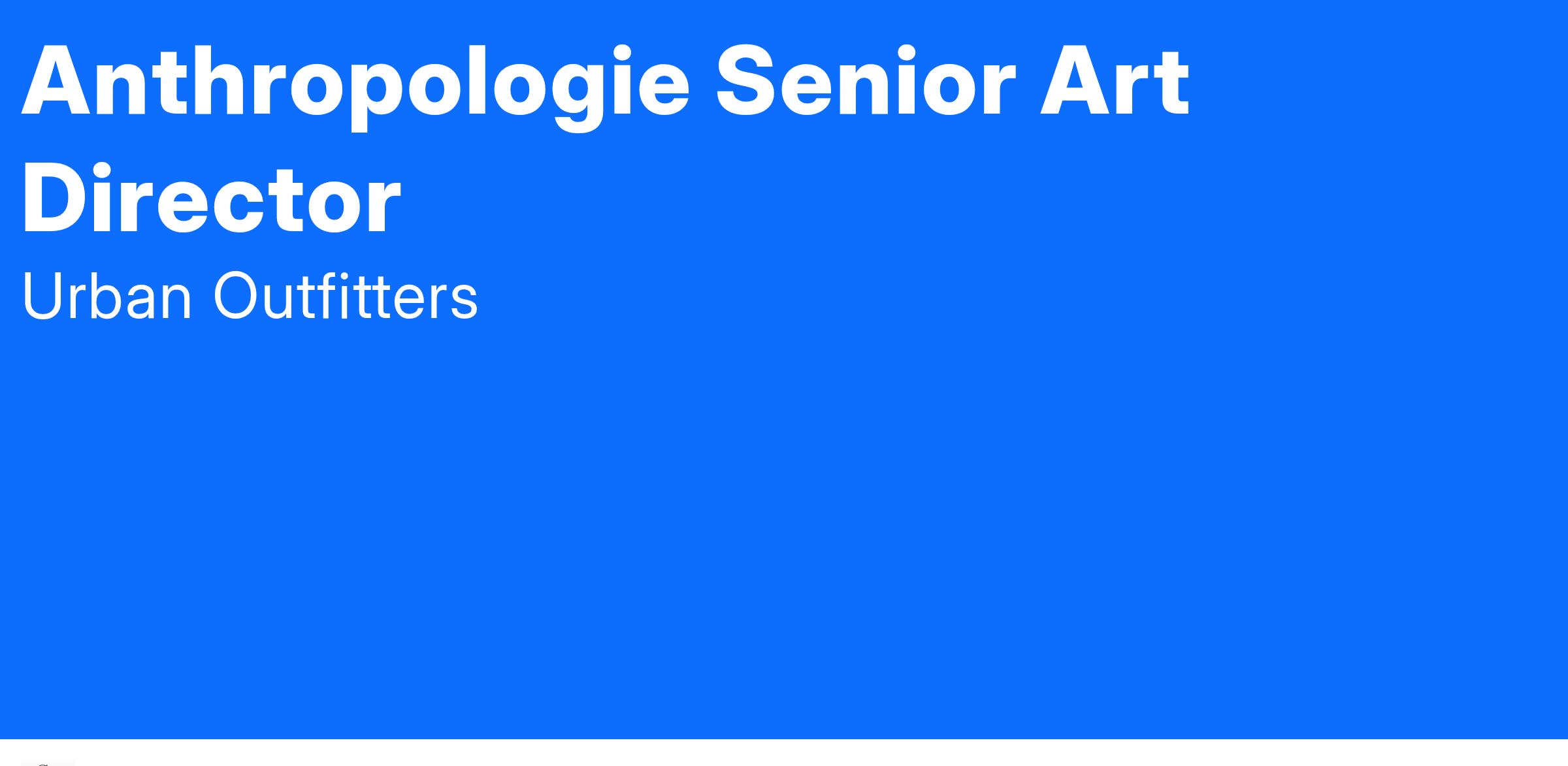 The Anthropologie Senior Art Director will help shape and evolve the Maeve brand at Anthropologie. Reporting to the Creative Director and Executive Creative Director, this role is responsible for leading the 360Β° visual identity and photo direction across all touchpointsβsite, e-commerce, email marketing, and social media. The ideal candidate is a strategic thinker with a refined aesthetic and a deep understanding of fashion storytelling.