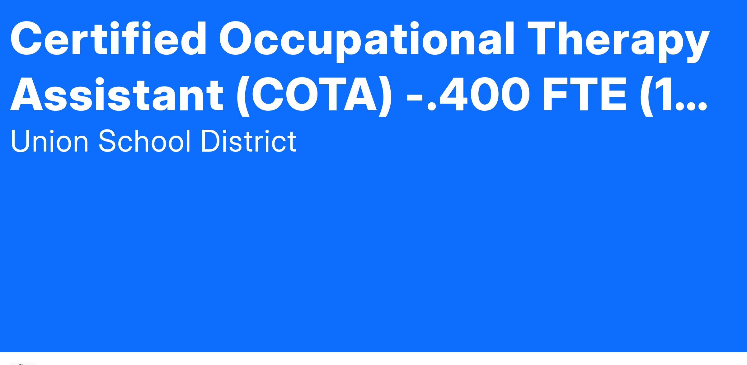 Under the direct supervision of the Occupational Therapist, the Certified Occupational Therapy Assistant provides therapy services to special education students in classrooms at various school site locations. This position will assist the Occupational Therapist on a day-to-day basis and will perform services to students as outlined in the treatment plans.