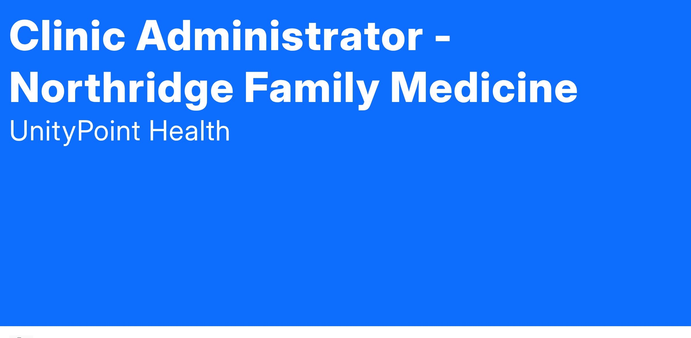 UnityPoint Clinic Northridge Family Medicine is seeking dynamic and experienced leader to join our team. As Clinic Administrator, this leader will partner with physician leaders in a dyad relationship to: