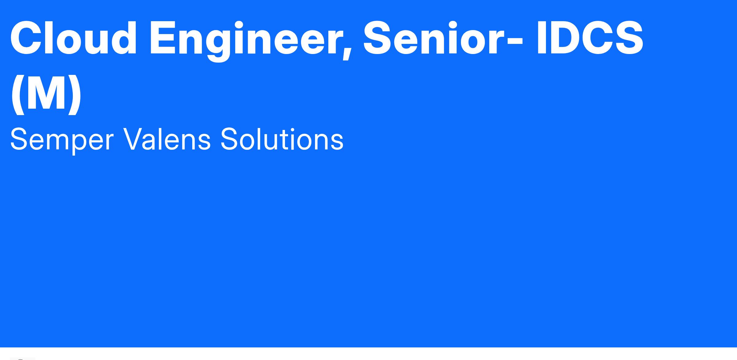 Semper Valens Solutions is looking for a Senior Cloud Engineer to support a large Air Force, IT enterprise, Cyber Weapons System/Program in San Antonio, TX.
