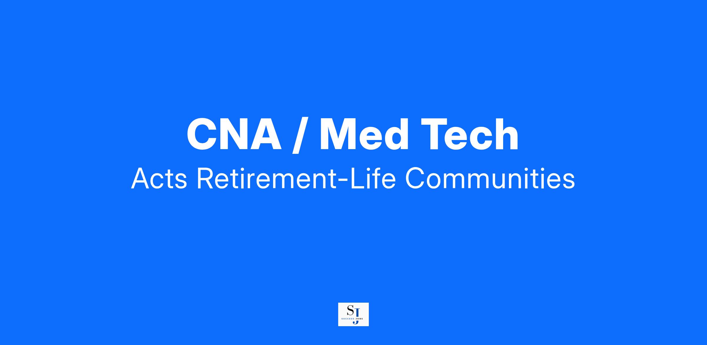 Acts is currently seeking qualified candidates for the role of Certified Nursing Assistant (CNA) / Med Tech in our assisted living neighborhood.