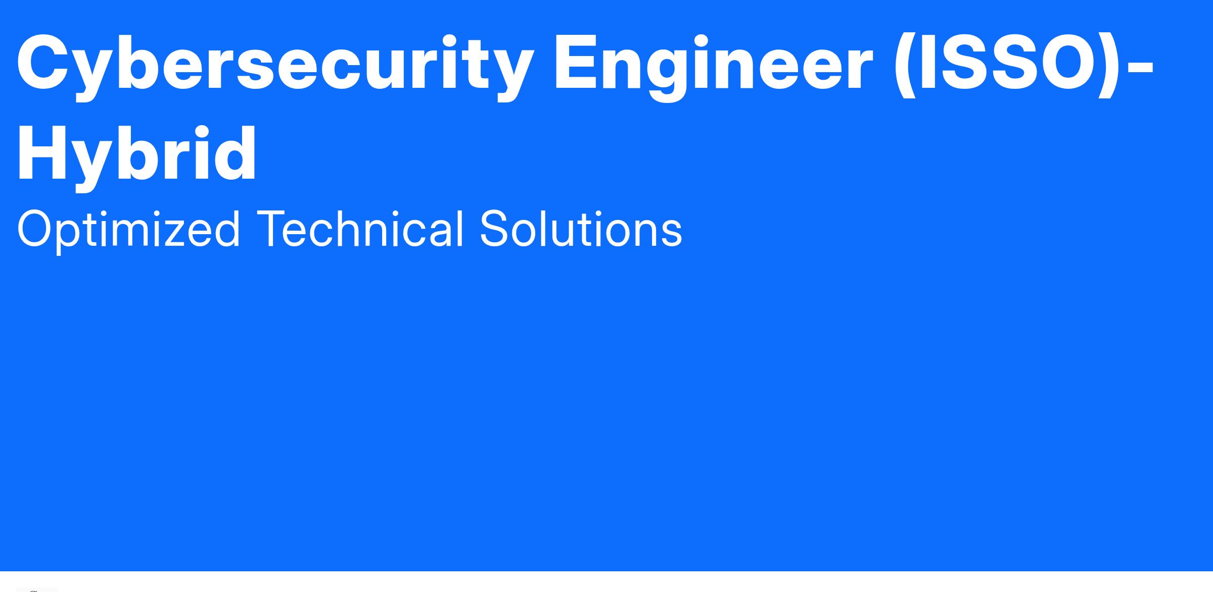 OTS is seeking a Cybersecurity Engineer (ISSO) to assist in security assessments, vulnerability tracking, and compliance enforcement for the system. This role will support the ISSM in managing security controls and DevSecOps security automation. This hybrid role allows flexibility to work remotely but requires on-site presence at an approved SIPR facility.