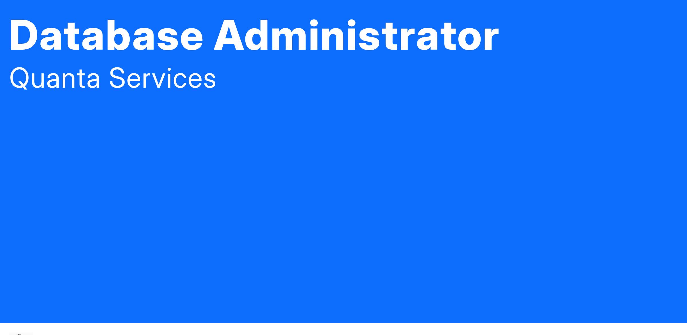 The Database Administrator role is responsible for the availability, security, support and integrity of theQuanta Services database platforms. This includes, but is not limited to, implementation andmaintenance of both SQL and Oracle databases, support to operating units and use of various management tools. The ideal candidate would have a background in database server design and architecture, implementation, database tuning, reporting services and security.