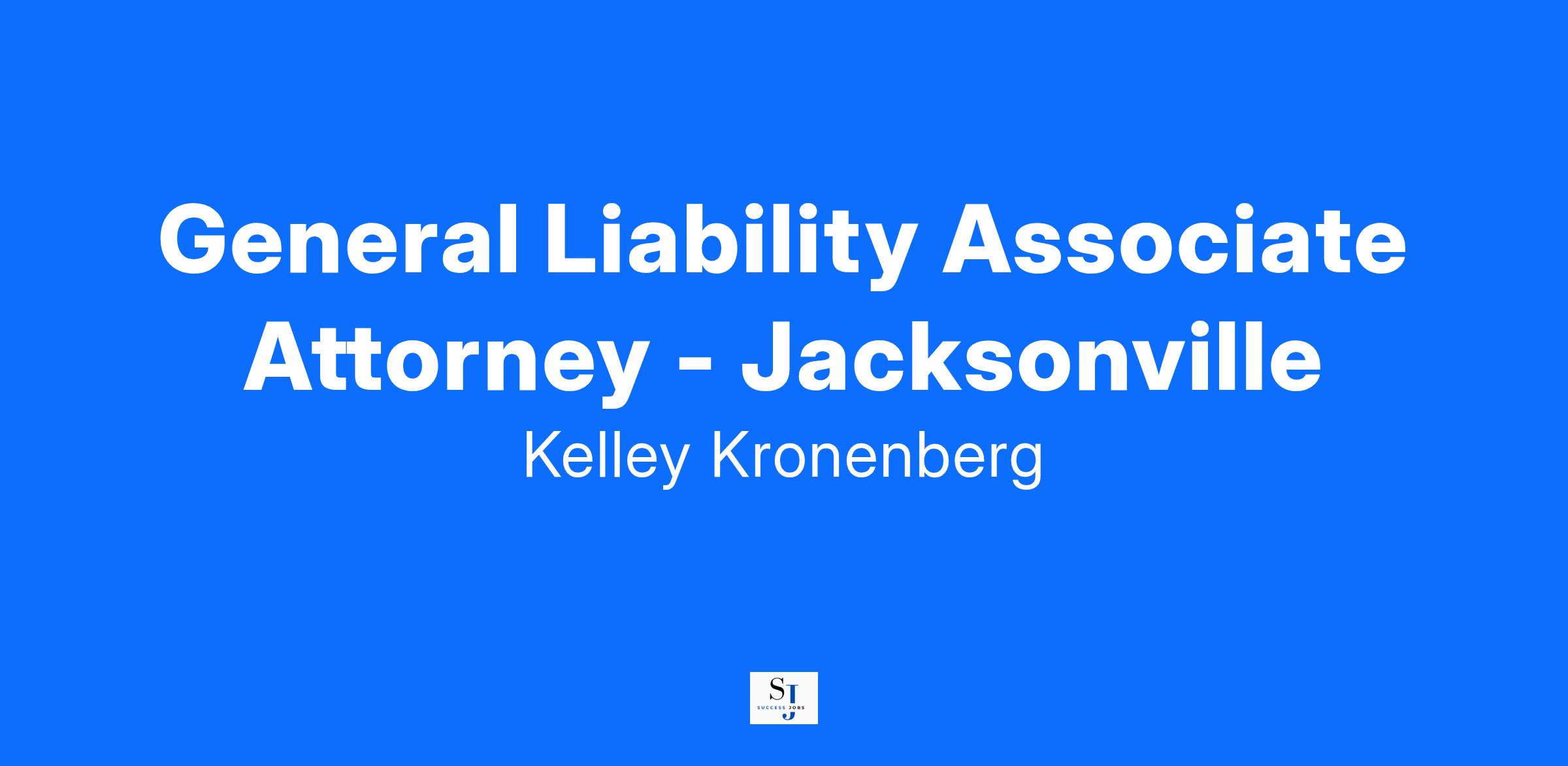 The Kelley Kronenberg Jacksonville office is hiring an ambitious Attorney to join our General Liability team! This person will be responsible for managing a high-volume caseload of complex litigation cases and providing legal representation to our clients.