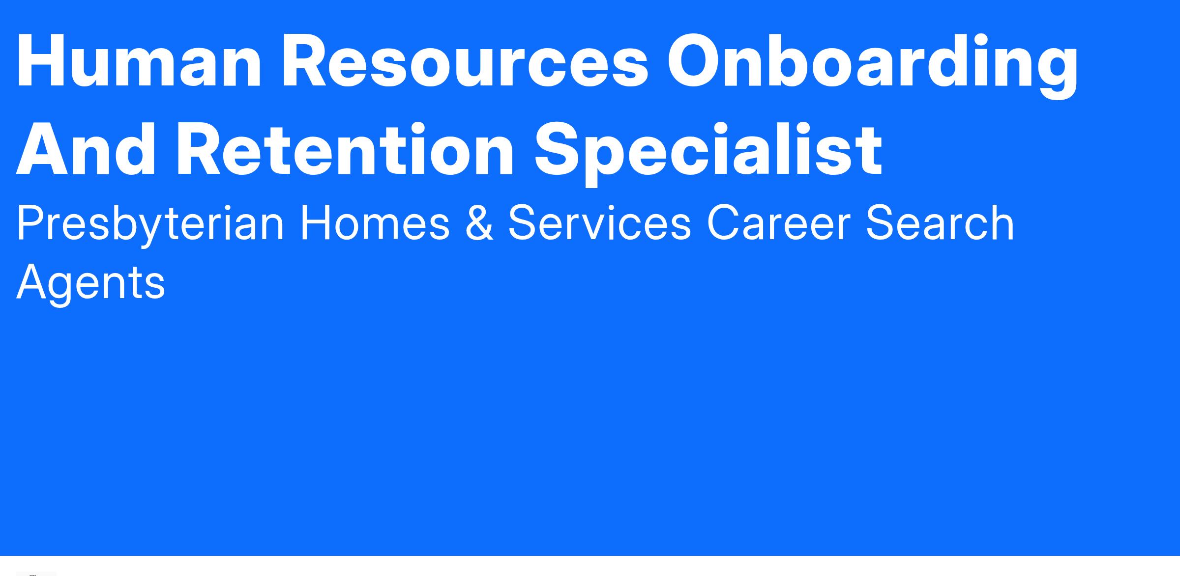 Presbyterian Homes & Services is seeking a Human Resources Onboarding and Retention Specialist for our team.