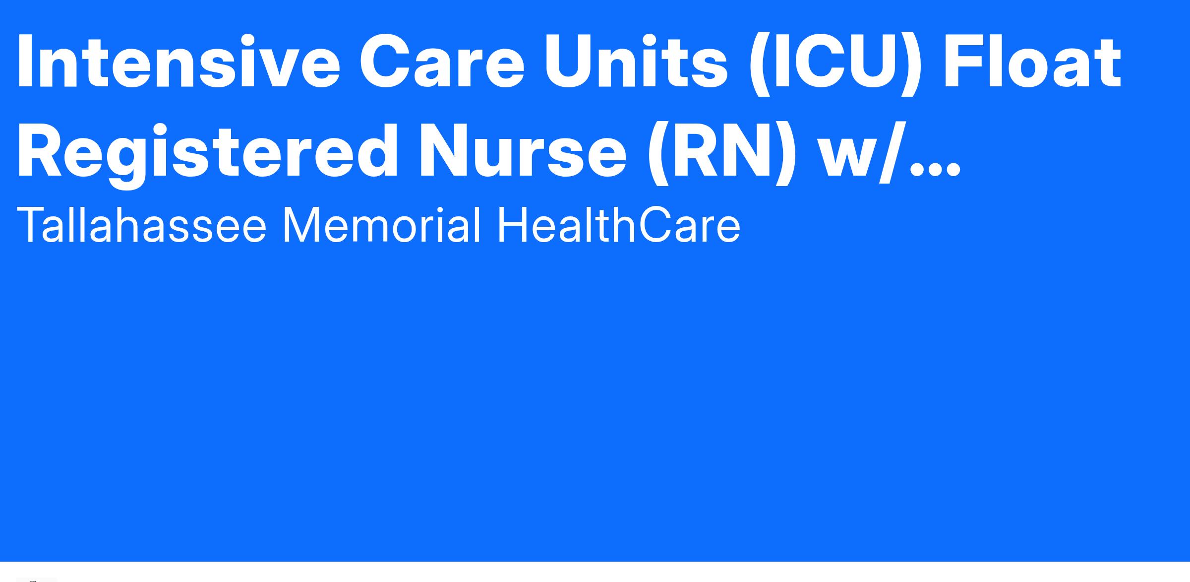 Tallahassee Memorial HealthCare is an equal opportunity employer and drug-free workplace. All employment is contingent upon successful completion of a drug screen, background check, reference verification, health assessment, and credential/license verification.