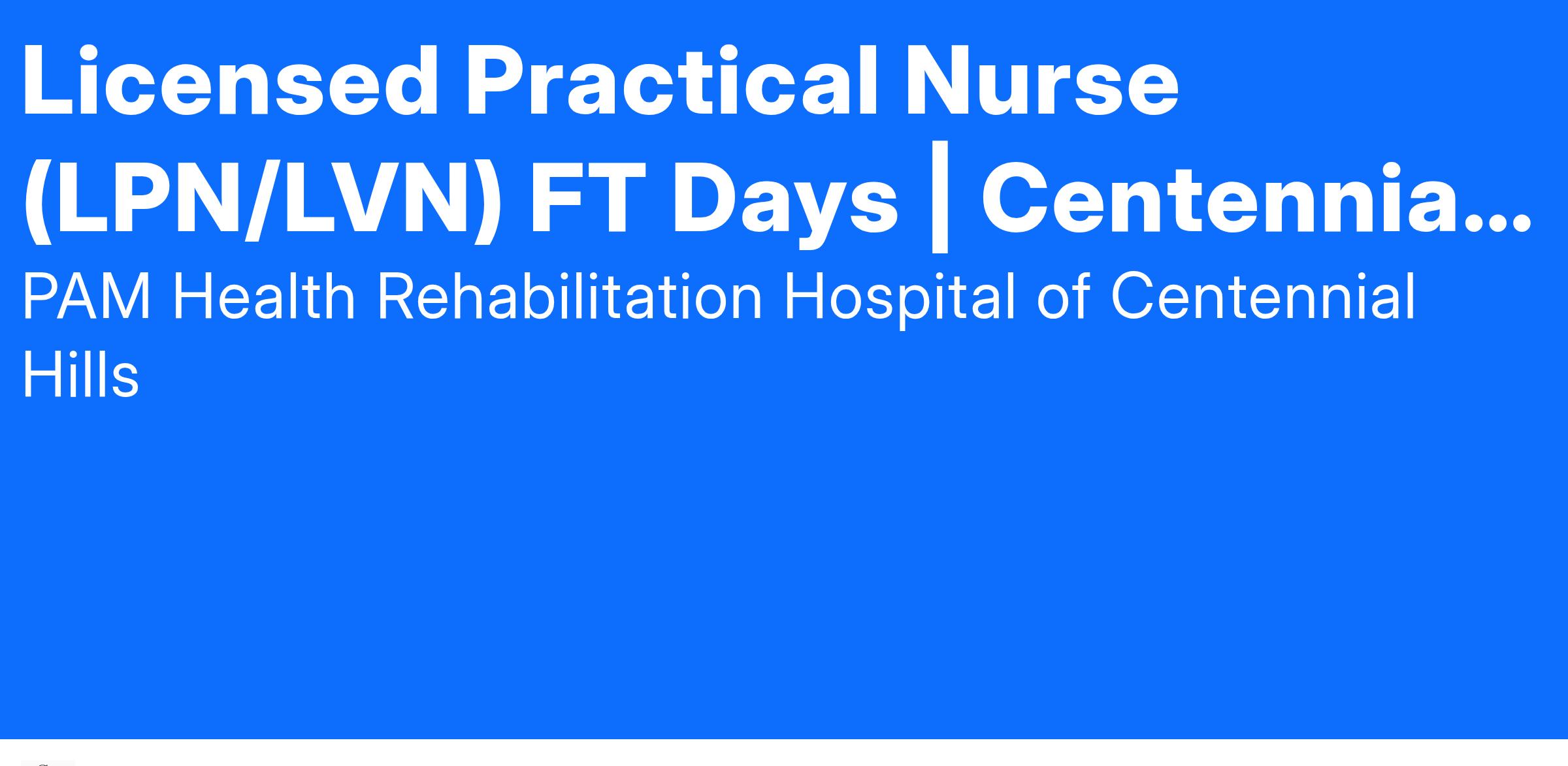 The Licensed Vocational Nurse (LPN/LVN) is responsible for providing appropriate nursing care, as directed by an RN on the nursing unit. Functions include gathering and reporting data, carrying out orders, and performing therapeutic procedures on patients in an age and population-appropriate manner, consistent with the policies, procedures, and guidelines of PAM Health. Performs other related duties as assigned or requested.