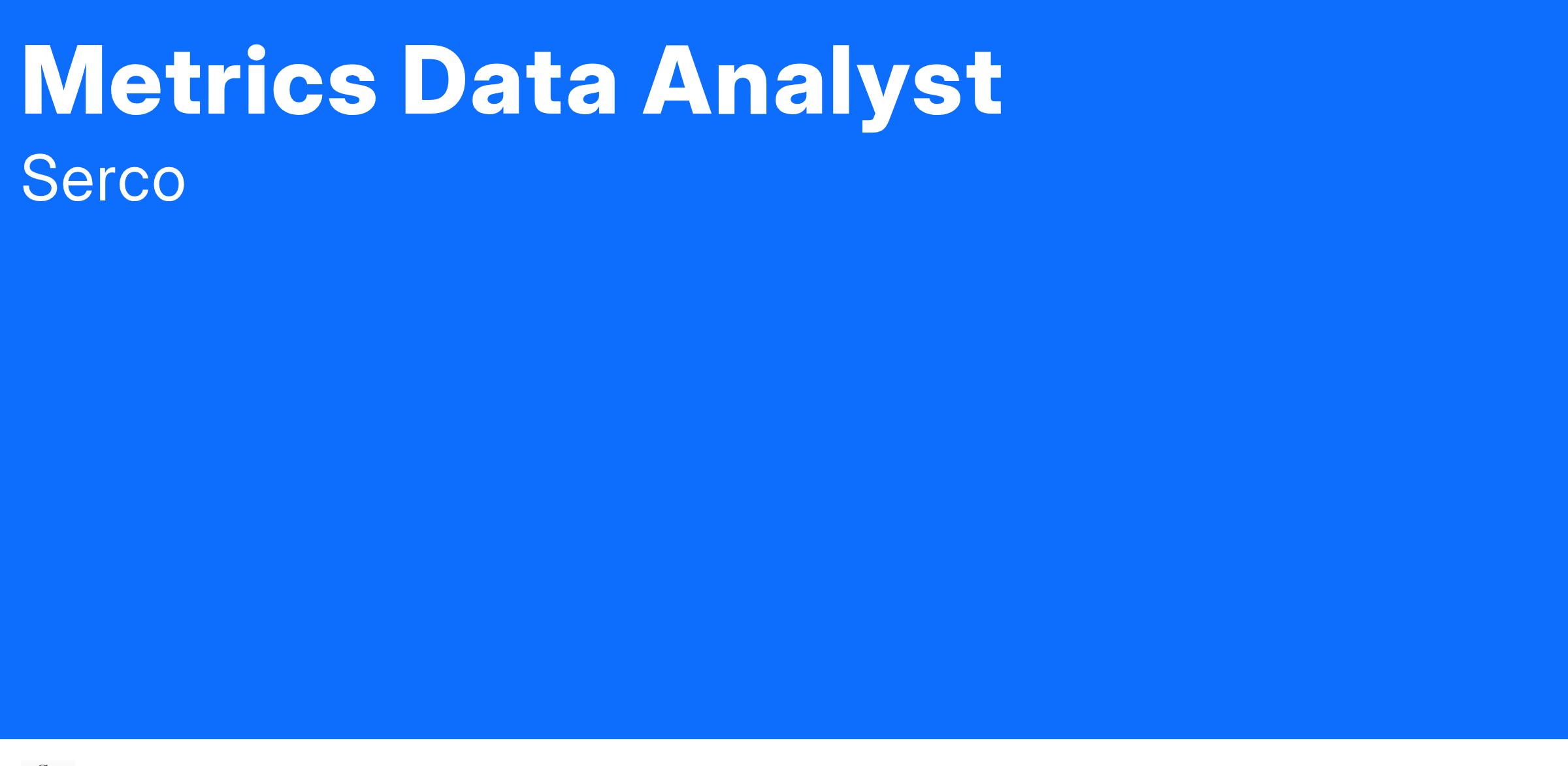 If you love high profile and challenging programing projects supporting the US Navy - Serco has a great opportunity for you! The Metrics Data Analyst position is seated in the Washington Navy Yard with potential opportunity for limited teleworking.
