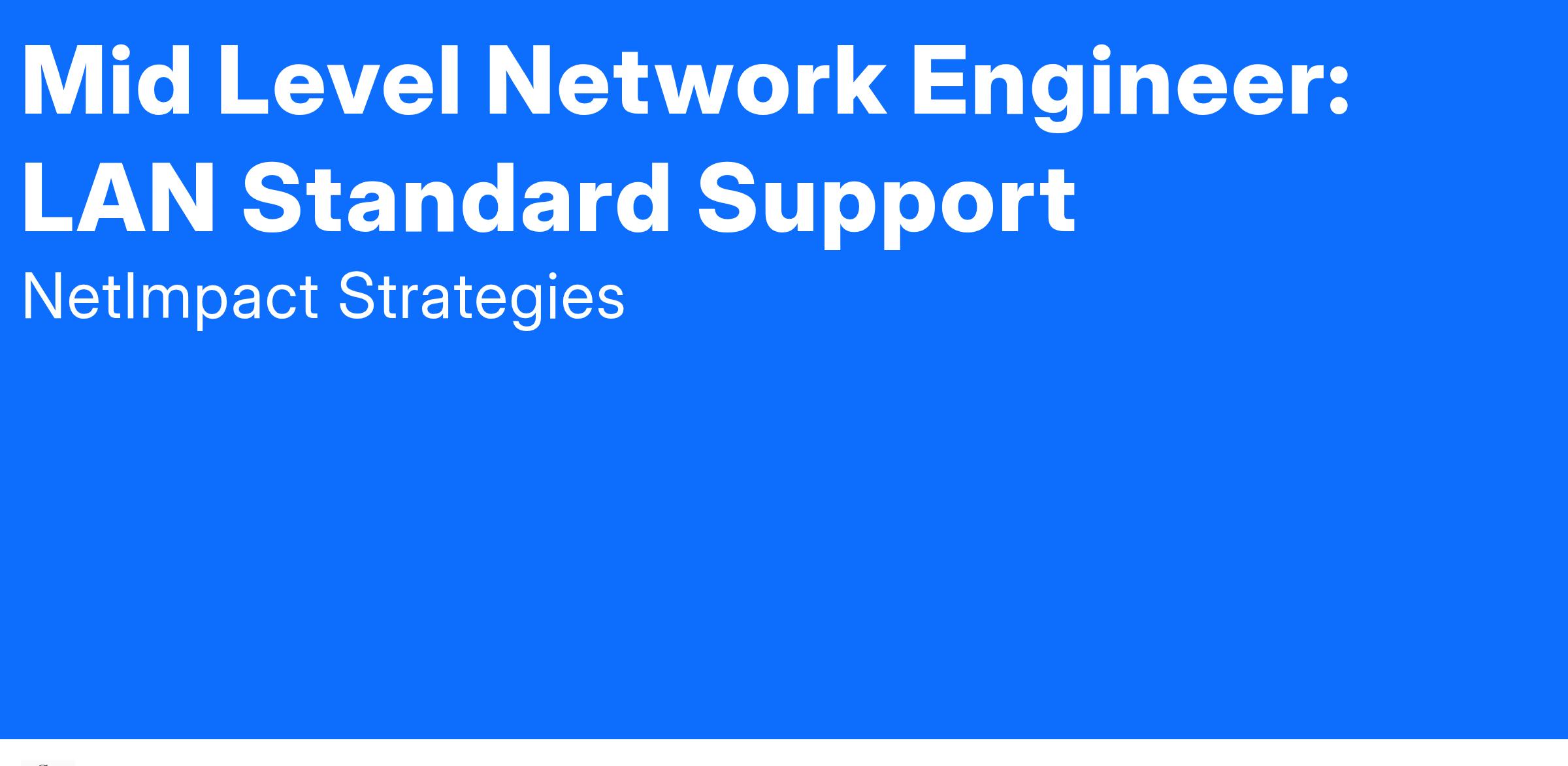 NetImpact Strategies, Inc. is seeking to hire a Network Engineer to support a Federal agency.