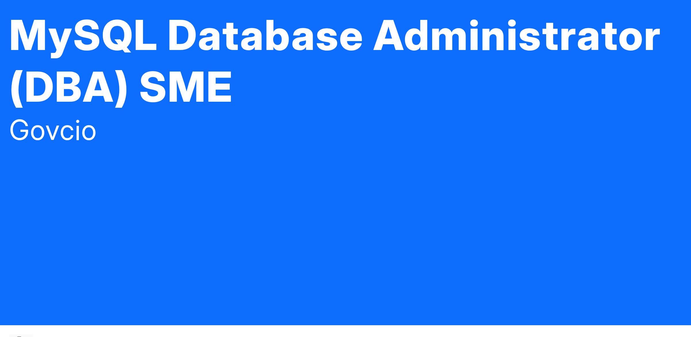 GovCIO is currently looking for a MySQL Database Administrator SME for our Courts proposal. This position will be located in San Antonio, TX.