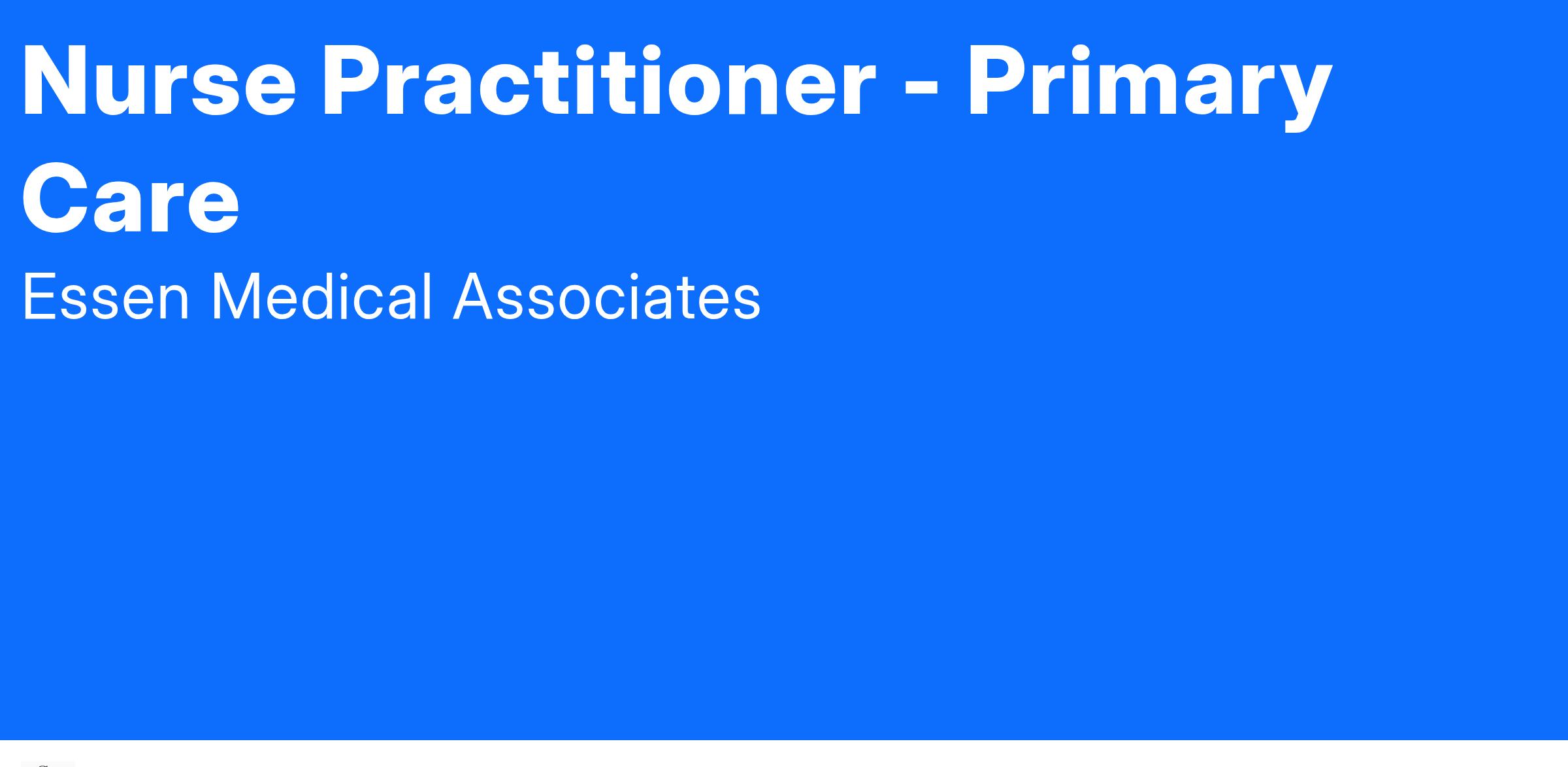 Job Summary: The Nurse Practitioner will be part of Essen growing medical professionals. Your primary responsibility will be to provide advanced primary and/or specialty care to our patients. Responsibilities will include but not limited to, performing physical exams, recording patient medical history, creating care plans and administering diagnostic test.