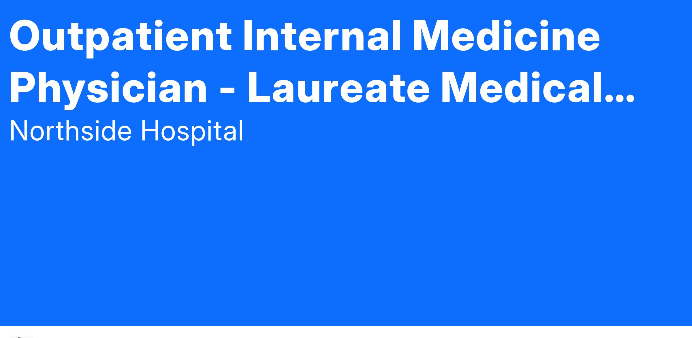 Northside Hospital's Multi-Specialty Group, Laureate Medical Group, is seeking an internal medicine outpatient physician to join our Midtown practice. Laureate Medical Group has over 5 locations in the Metro Atlanta area made up of over 40 physicians. The ideal candidate will be full-time (office-based) and possess a strong commitment towards providing high quality care. Conveniently located in metro-Atlanta.