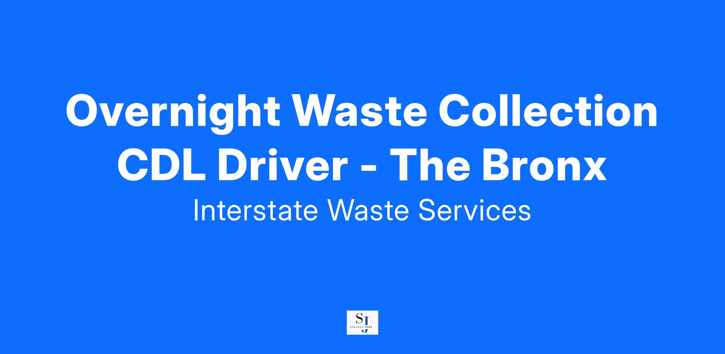 We are seeking a Waste Collection CDL Driver who will be working out of our Bronx Depot (315 Casanova St, Bronx, NY 10474) and reporting to the Site Manager but is also subject to supervision by Route Supervisors and Dispatchers. This is a full time, Union, non-exempt, hourly position with an overnight schedule starting anywhere between 6pm and 10pm, Sunday evening through Friday evening but may vary depending on business needs. Shifts may vary from 10 to 12 hours per evening or until the route is complete.