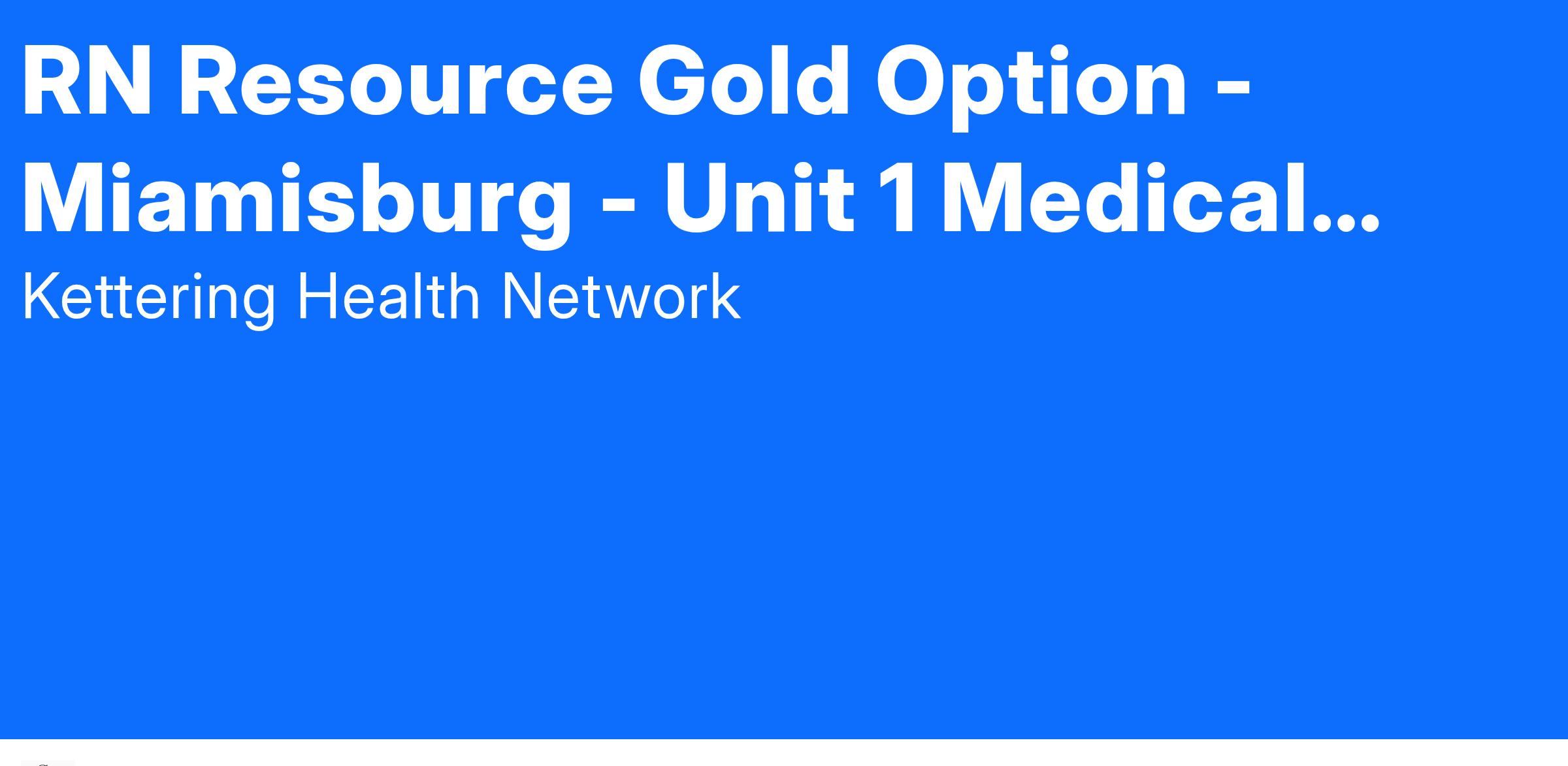 RN Resource Gold Option - Miamisburg - Unit 1 Medical Surgical - PRN/Nights