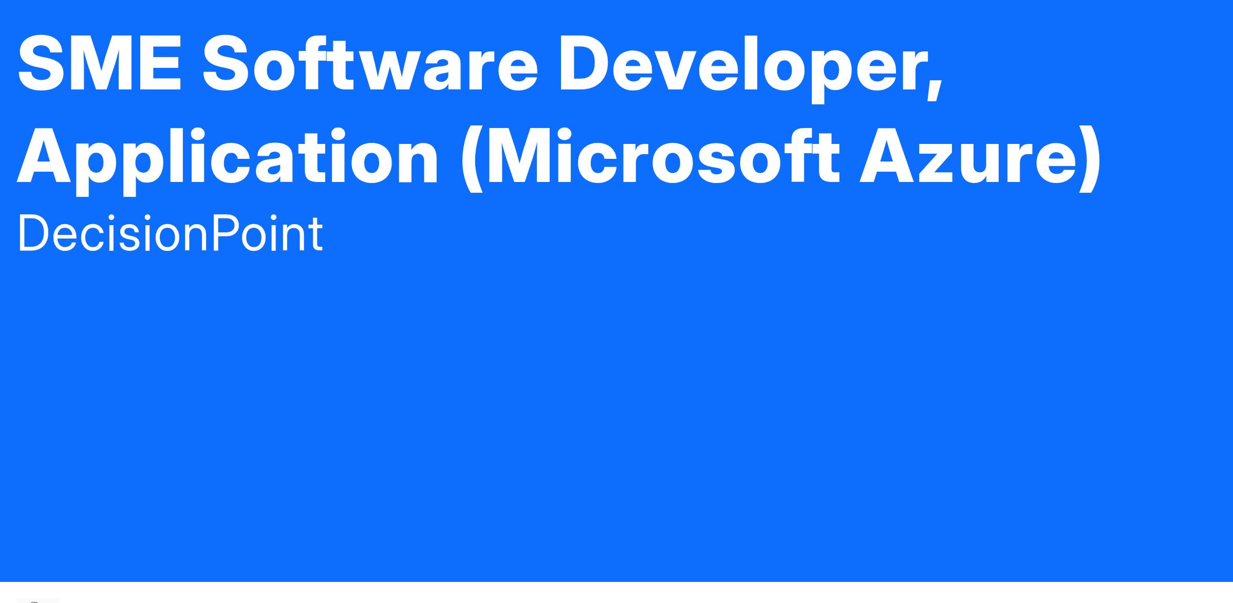 DecisionPoint Corporation is seeking a SME Software Developer, Application (Microsoft Azure) to join our team on an upcoming contract to support the Unites States Coast Guard USCG) Aviation Logistics Center (ALC) Information Systems Division (ISD) in Elizabeth City, North Carolina. The USCG ALC ISD provides development, security, and operations (DevSecOps) IT support for products and services for the Coast Guard Information Officer (CIO), Commandant, and Coast Guard Cyber Command through a geo-dispersed workforce including military, civilians, an contractor personnel committed to supporting the USCG’s missions and requirements of the leading growing interconnectivity, increased reliance on data and networks, and development of commercial space and artificial intelligence systems.