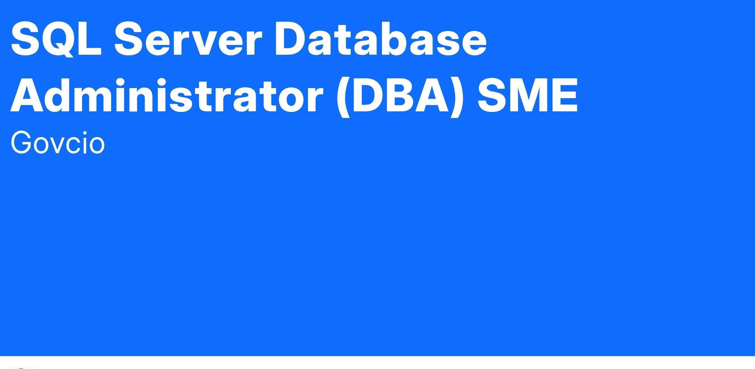 GovCIO is currently looking for a SQL Server Database Administrator SME for our Courts proposal. This position will be located in San Antonio, TX.