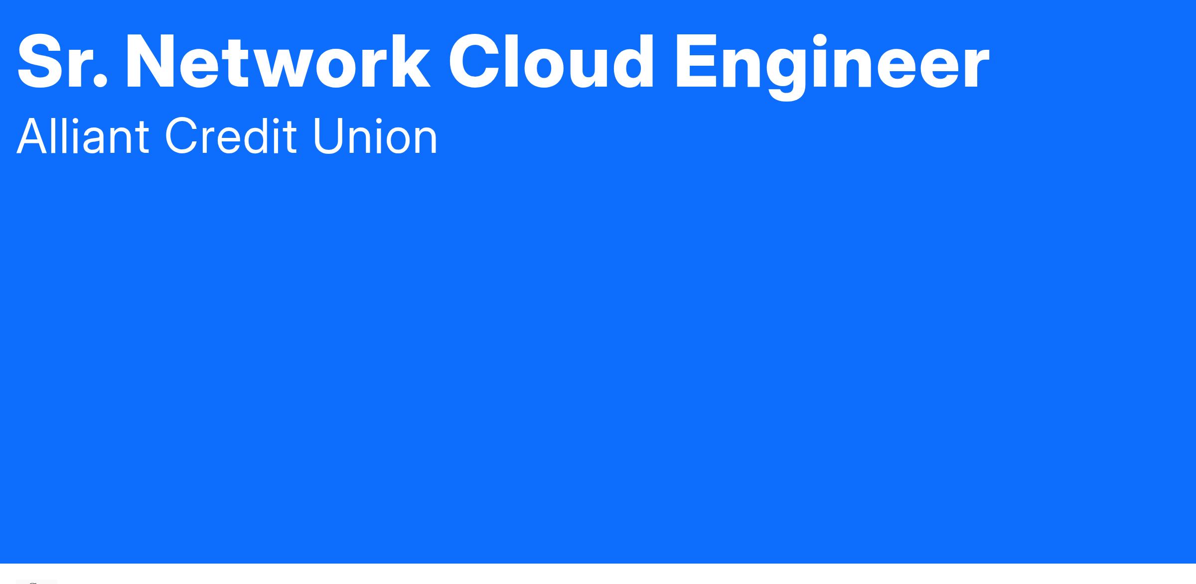 Alliant Credit Union is seeking Sr. Network Cloud Engineer in Chicago, IL with the following requirements: Bachelor’s degree in Electronics Engineering or related field or foreign equivalent degree. 5 years of related experience. Required Skills: Use datacenter and cloud ecosystem connectivity concepts, such as cloud exchanges, datacenter network layouts, transceiver and fiber compatibility, cloud gateways, peering to Azure/AWS; Apply protocols including MPLS, BGP, OSPF, STP, VTP, and EIGRP, Multicast, and policy-based routing to Network/Security infrastructure; Use Scripting – IAC - Ansible/Python/Terraform to manage and automate infrastructure; Apply knowledge of Cloud-Network Security Infrastructure AWS-Azure- Palo Alto-F5 – Load Balancers to build, manage consistent policies across on-prem and multi-cloud environment. 60% telecommuting; Must live within normal commuting distance of Chicago, IL. Benefits: https://www.alliantcreditunion.org/careers Salary range: $161,179 - $163,000.