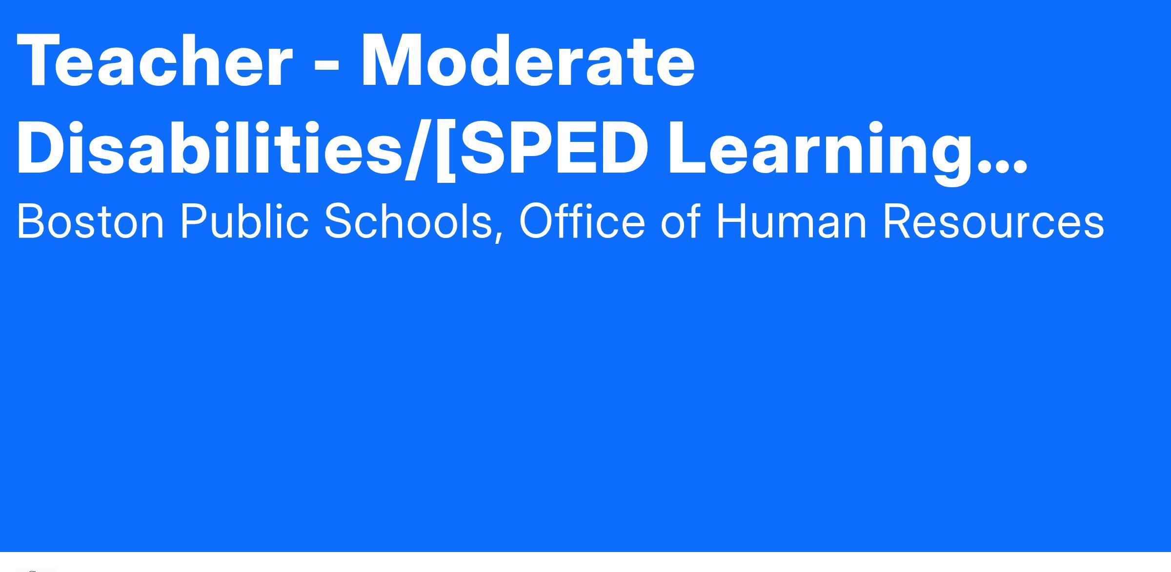 Boston Public Schools seeks an exceptional Special Education [SPED Learning Disabled] Teacher with an SEI Endorsement who is highly qualified and knowledgeable to join our community of teachers, learners, and leaders. This is an exciting opportunity for teachers who desire to serve where their efforts matter. In BPS, the teachers and leaders are committed to the vision of high expectations for achievement, equal access to high levels of instruction, the achievement of academic proficiency for all students, and the closing of the achievement gap among subgroups within the schools. BPS is a great place for those who seek to work in an environment that supports their creativity and innovation, and respects their skills and abilities as a teacher.