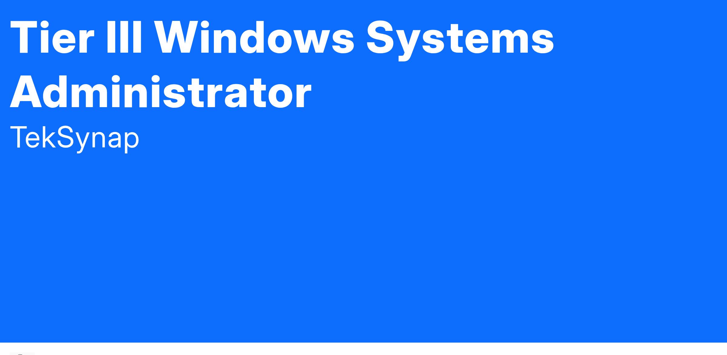 We are seeking a Tier III Windows Systems Administrator to join our team supporting the NOAA SBITS Contract in Silver Spring, MD.