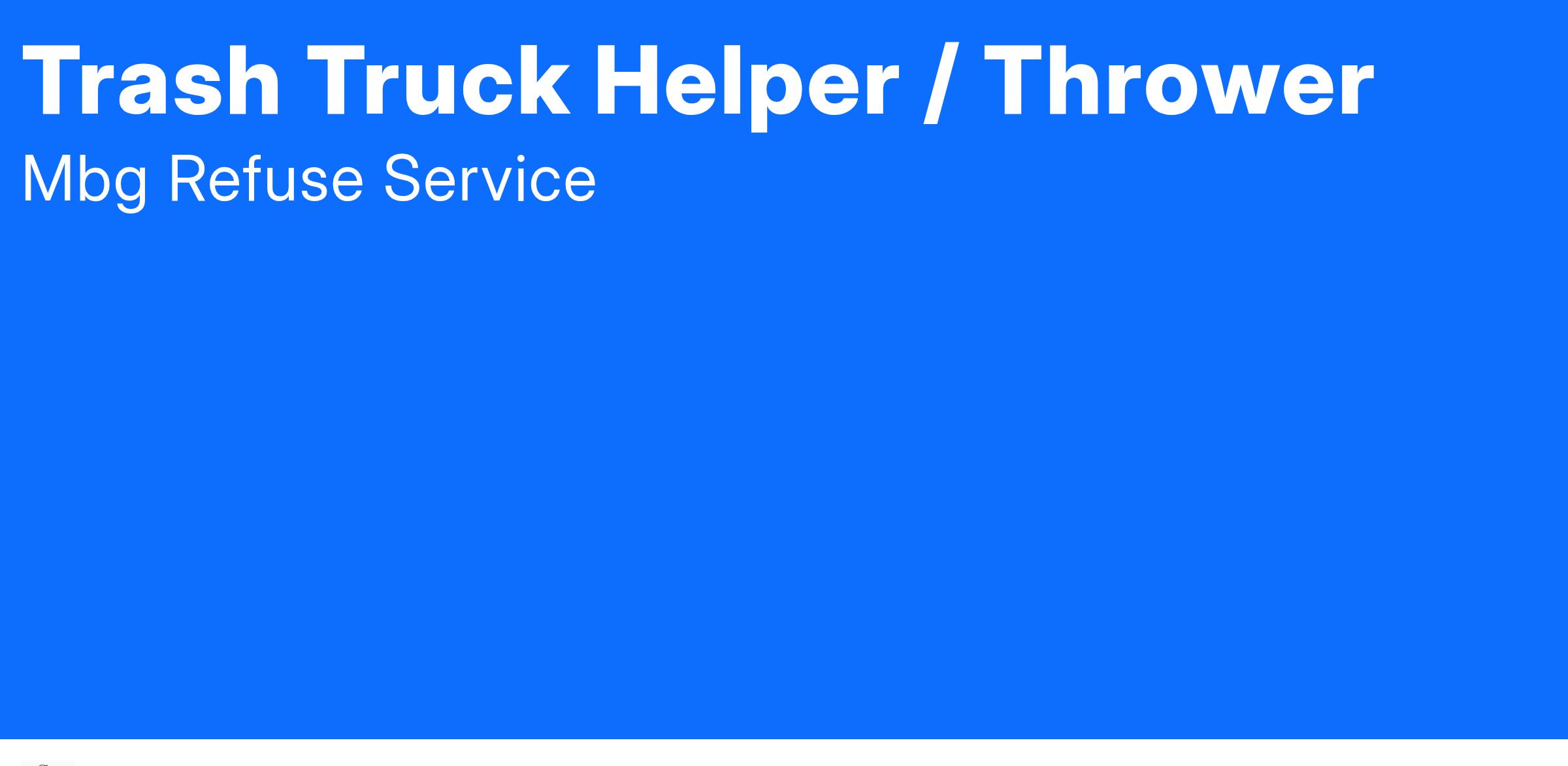 As a rear-load trash truck helper, you will be one of the two people on the back of a trash truck that rides along a predetermined route through a residential neighborhood. A trash truck helper is tasked with collecting trash, recycling, or yard waste from the curb and putting it in the back of the trash truck. *
